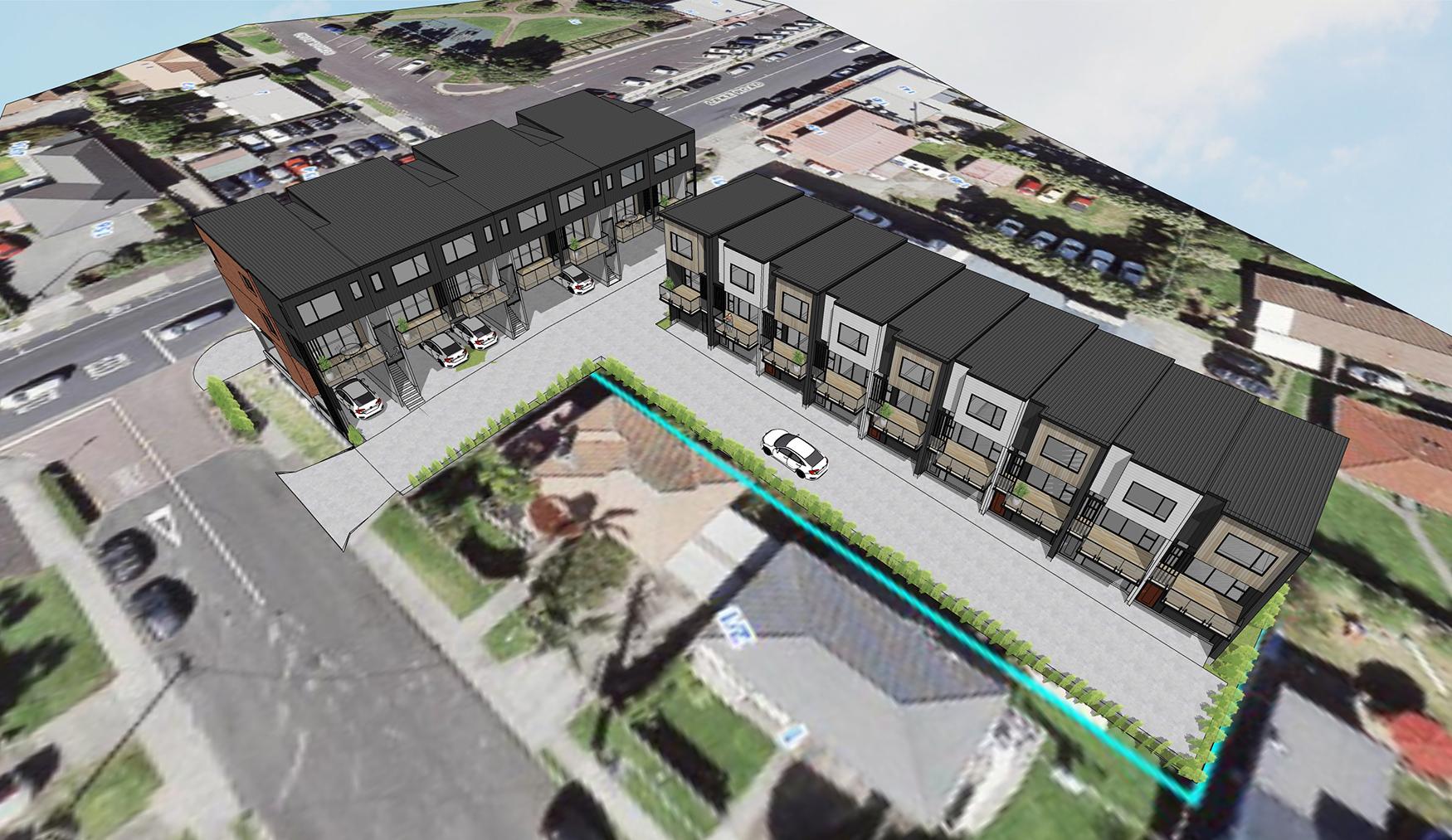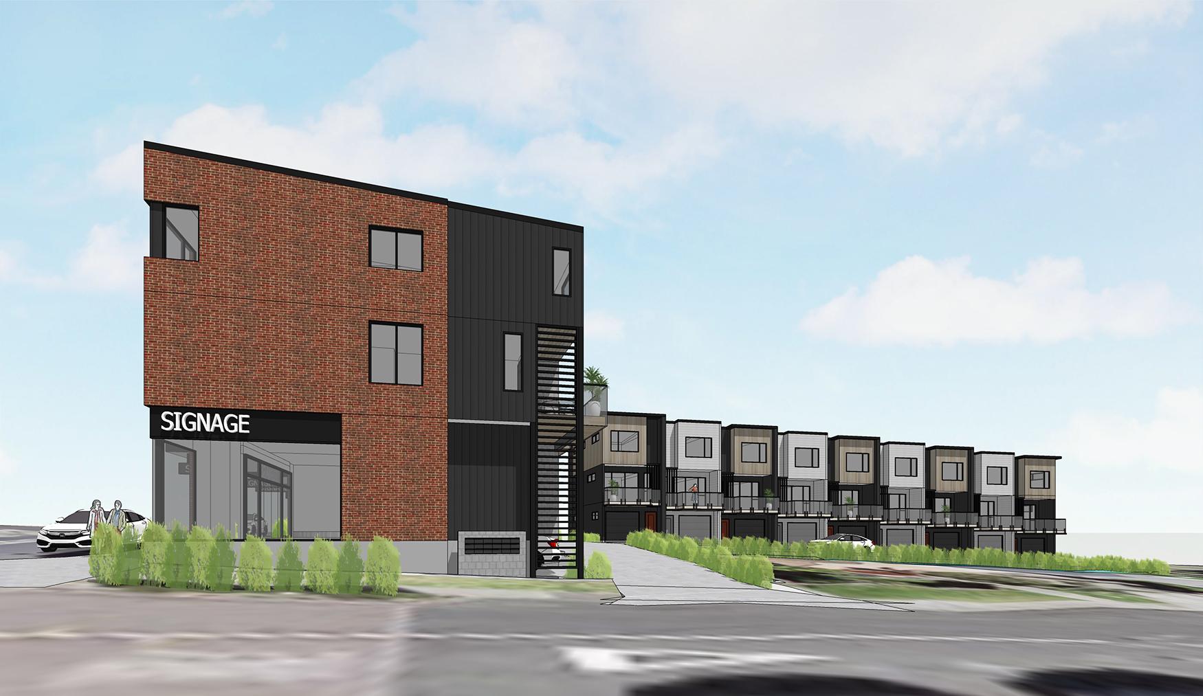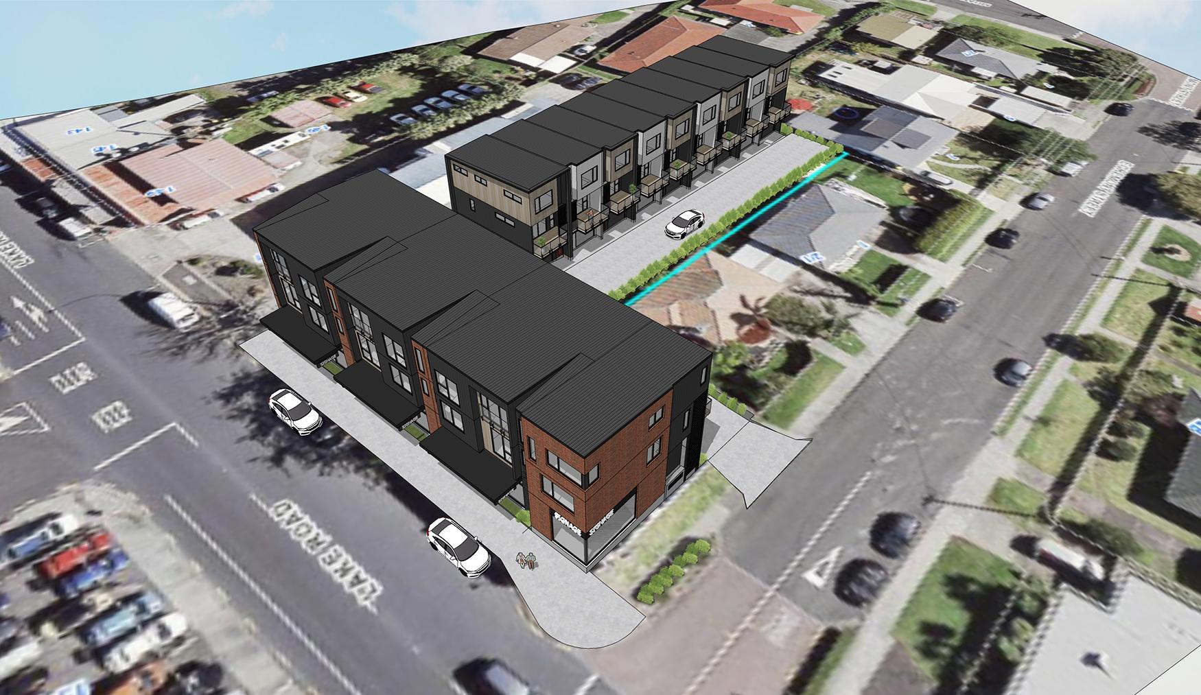 A mixed use project with retail on the ground floor and maisonettes above the retail. In the back of the site where there is no street frontage, 9 terraced houses are proposed.